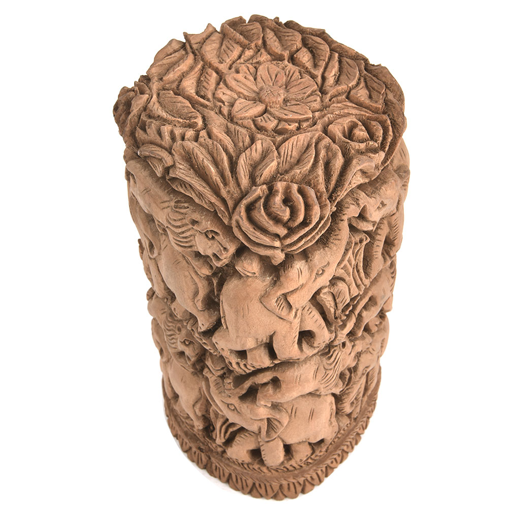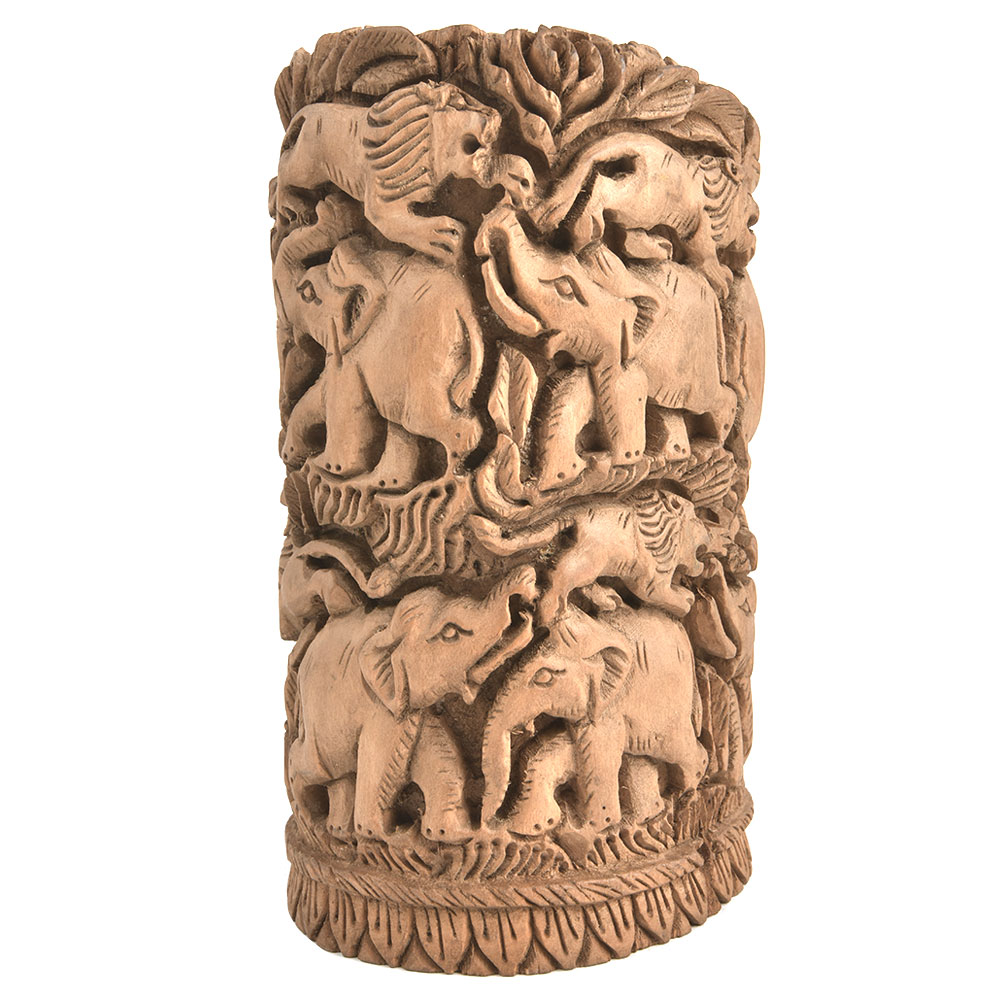 Wooden Indian Elephant Lion Carved Home Decor Statue