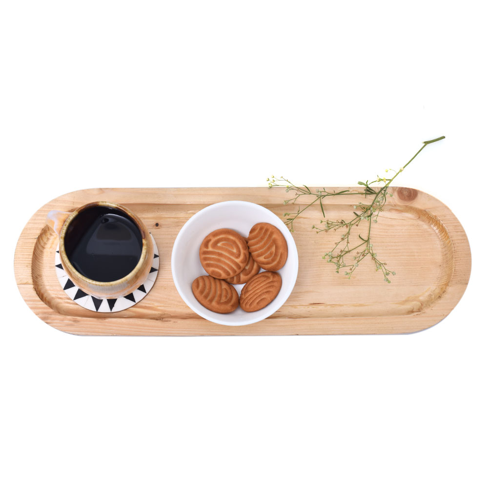 Japanese-style wooden tray with improved appearance, top-notch construction, and extended use. The bottom is wide and flat and can hold bread, fruit, pizza, steak, and snacks. It is very ideal for your everyday usage, lovely and practical, easy to clean after sharing food, and simple to use. It is beautifully polished with smooth curves, edges, and corners.