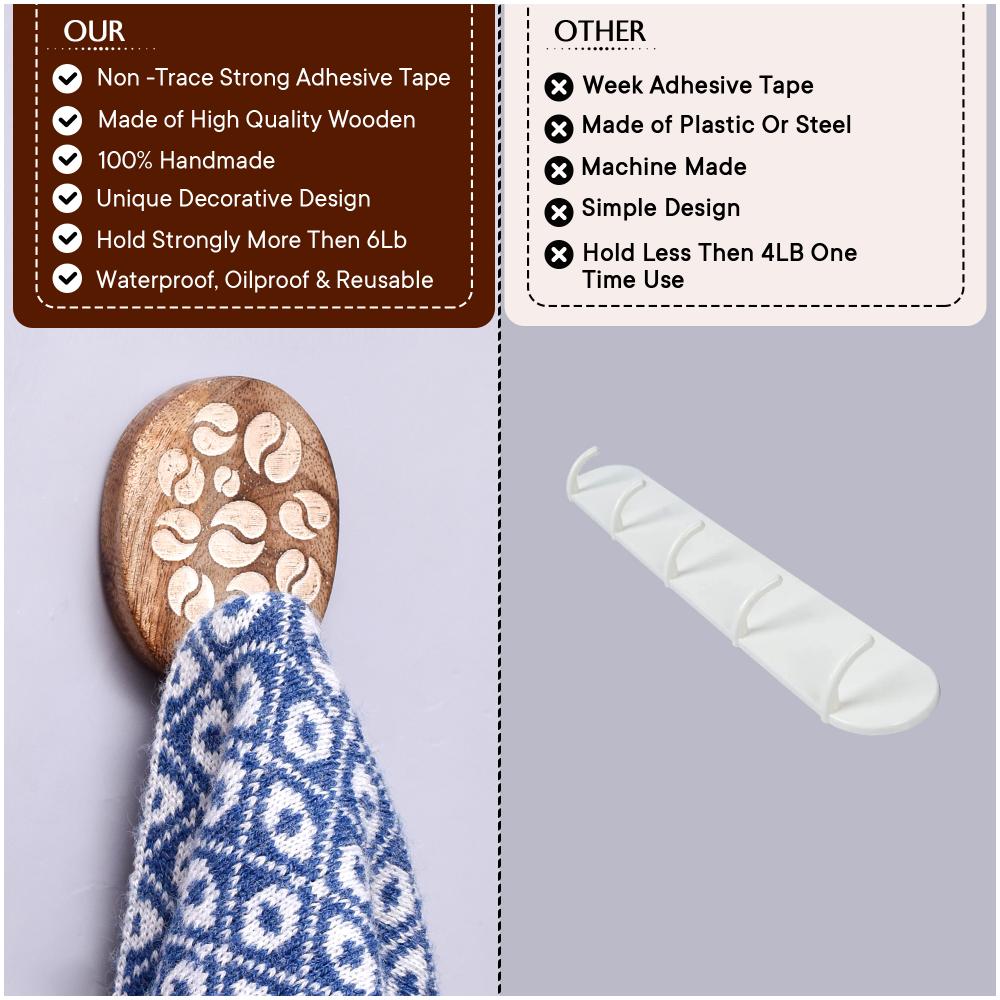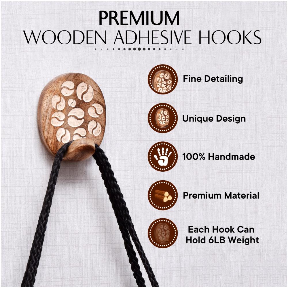 Despite their easy-to-apply adhesive backing, these wooden hooks are built to last. The sturdy wood construction ensures that these hooks will support everyday items like coats, bags, and towels without bending or breaking. The adhesive is designed to stay strong over time, providing reliable support for a wide range of lightweight items.