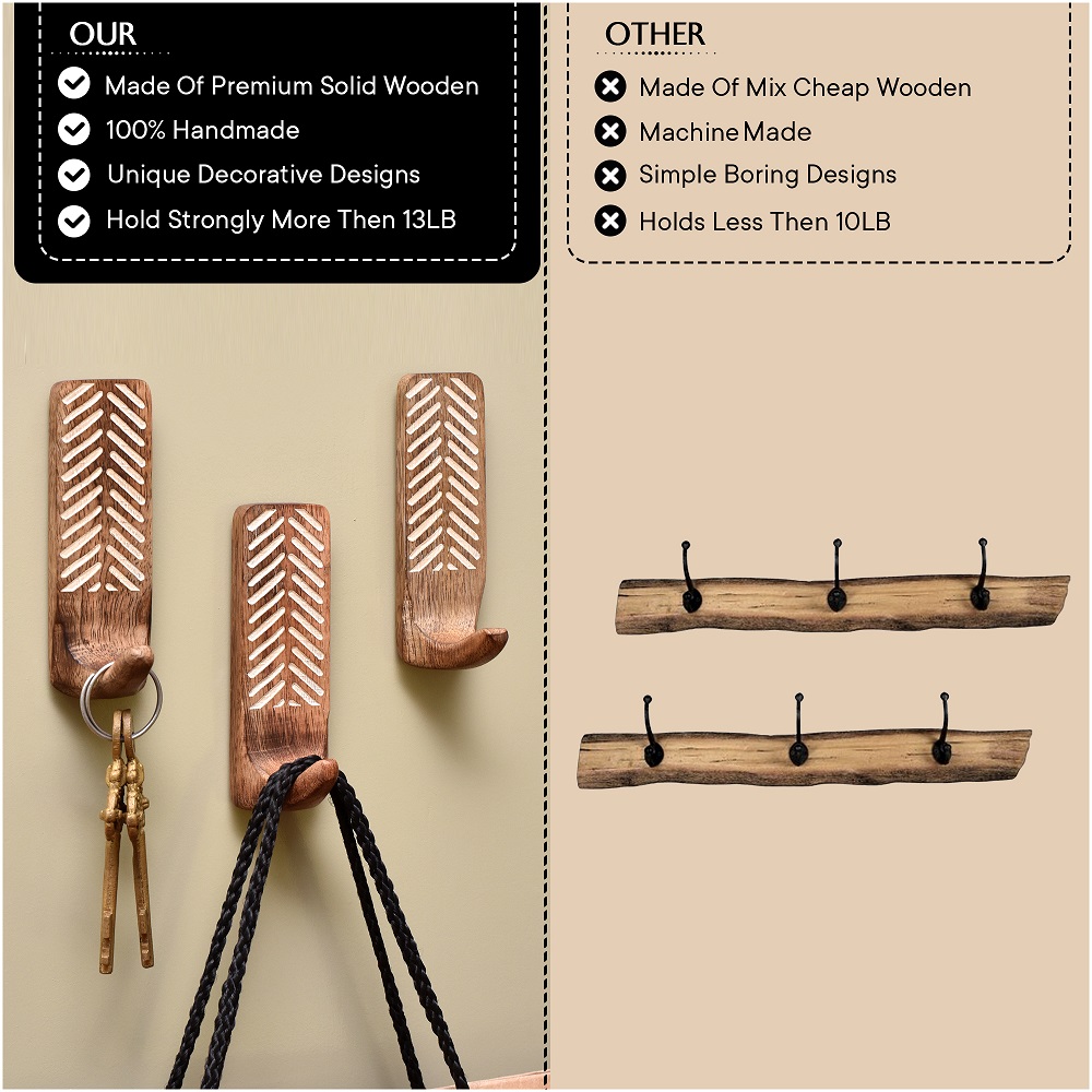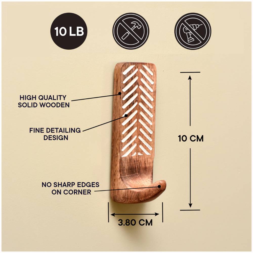 Indianshelf.com for bulk/wholesale orders.Indianshelf.us for personal purchases.Add a touch of rustic charm and practicality to your home with these Wooden Self-Adhesive Brown Wall-Mounted Hooks. With their sleek wooden design and strong adhesive backing, these hooks are ideal for hanging coats, bags, towels, and more, all without the hassle of drilling or damaging your walls. They offer a simple and effective solution for both permanent and temporary living spaces.