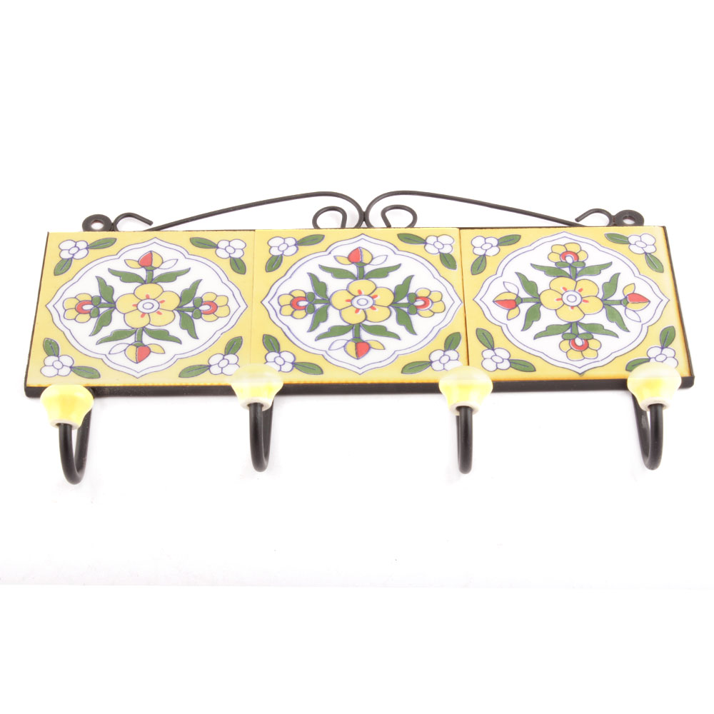 Indianshelf.com for bulk/wholesale orders.Indianshelf.us for personal purchases.Brighten up any room with the charming Yellow and Forest Green Flower Tiles Hooks. These beautifully crafted hooks feature intricate floral tile designs, combining vibrant yellow and rich forest green tones. Perfect for adding a touch of color and elegance, these hooks serve both as a decorative and functional piece for your home.