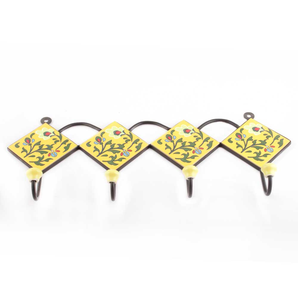 The Yellow and Forest Green Leaf Ceramic Floral Tiles Hook is a handcrafted piece of functional art. Featuring a hand-painted ceramic tile with delicate green leaf and floral patterns over a bright yellow backdrop, this wall hook brings together nature, color, and craftsmanship. Inspired by botanical tilework and Mediterranean design, it adds personality to your space while keeping things organized. This ceramic wall hook blends beauty and function in a way that feels fresh and timeless.
