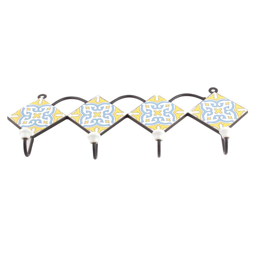 Yellow And Turquoise Ceramic Floral Tiles Hooks