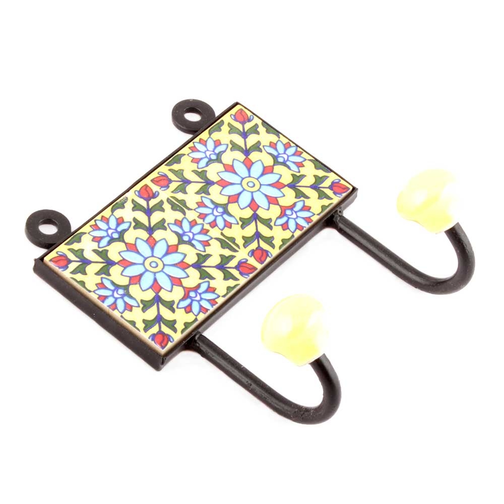 Yellow And Turquoise Sunflower Tiles Hooks Online. When Put on Wall or Cabinet it is an Art in itself. The Metal Part of this Hook is Black Powder Coated.