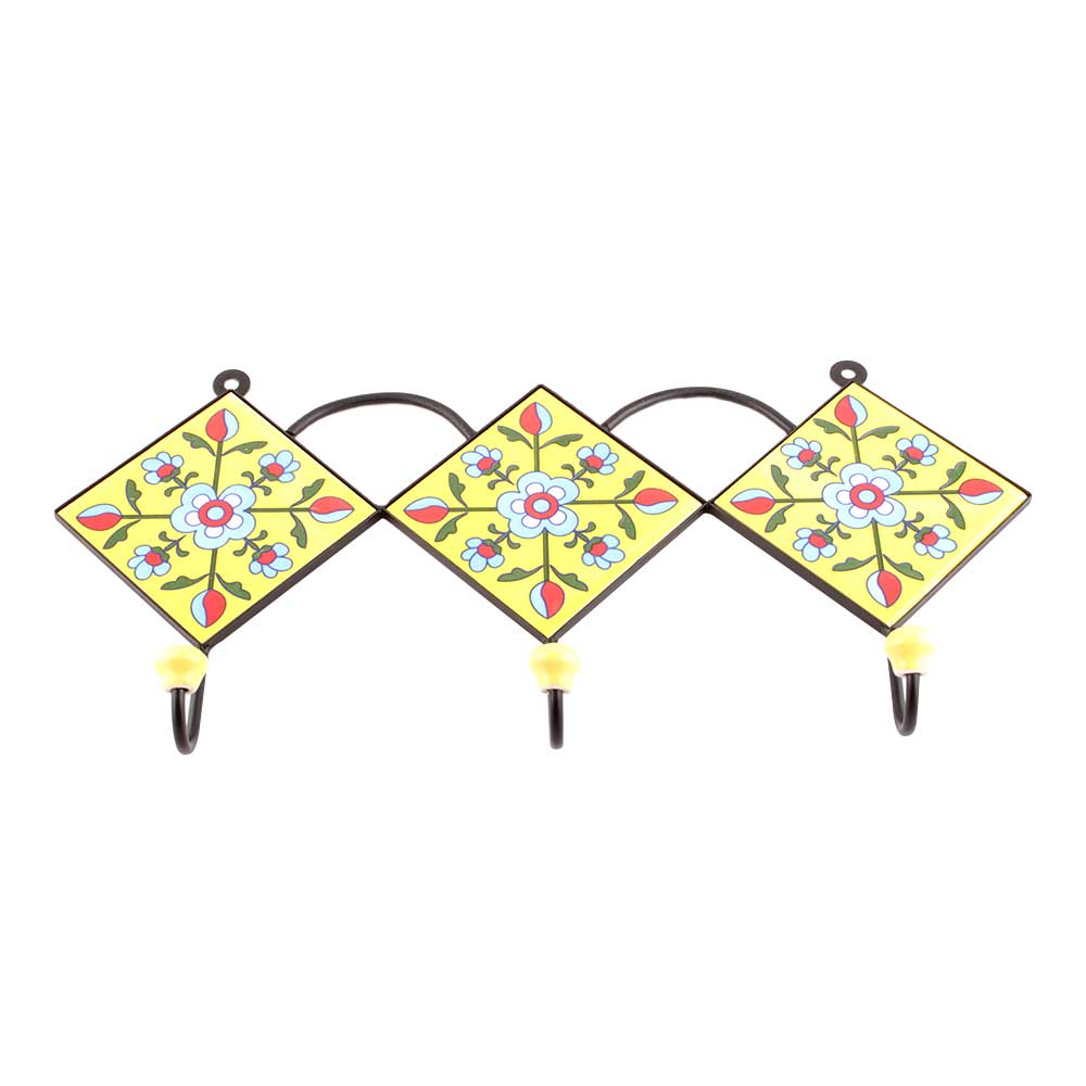 Yellow And Turquoise Tiny Floral Ceramic Tiles Hooks