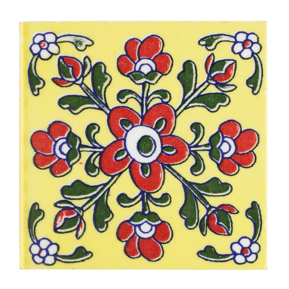 • Yellow Base Red Tiny Flower Ceramic Tiles
