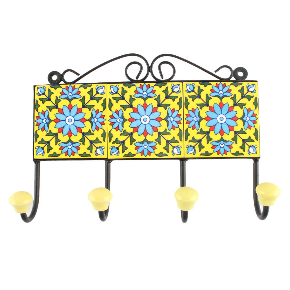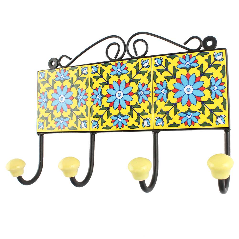 Yellow Base Turquoise Sunflower Ceramic Tile Hook