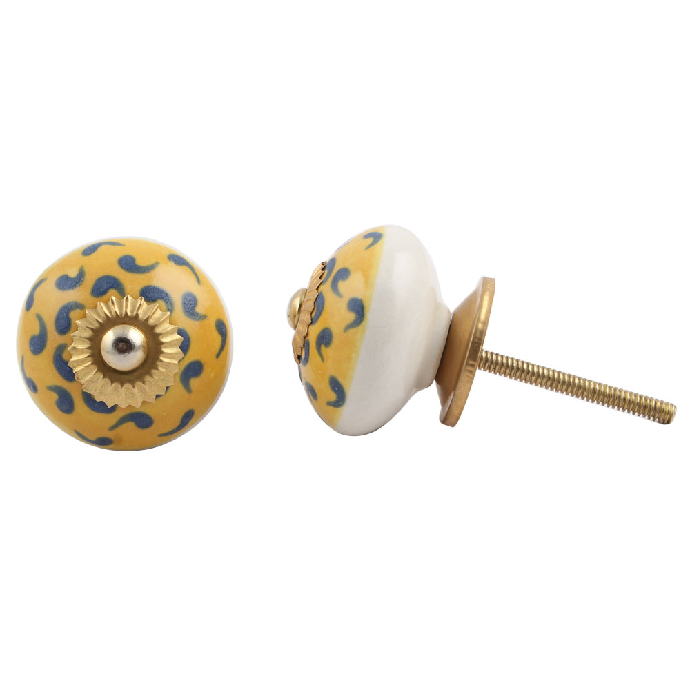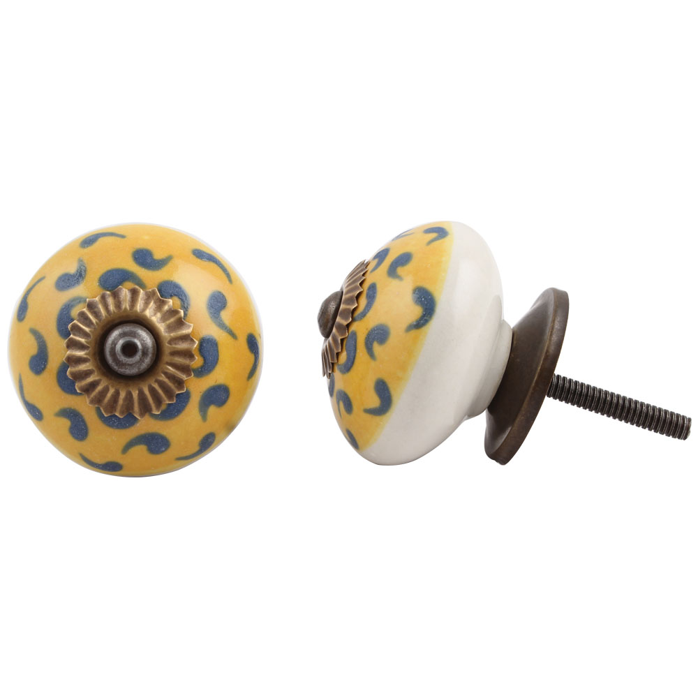 Yellow Blue Floral Ceramic Knob