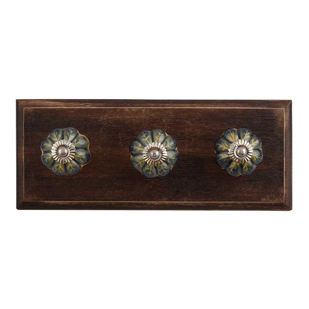 Yellow Blue Leaf Ceramic Wooden Hook. A Perfect Complement to the Soft Tone of the Wood are these White Traditional Hat & Coat Hook Made of Genuine Porcelain and Brass. It can be use to Hang Jewellery, Leashes, Towels, Scarves, Light Weight Sweaters, Caps Etc.
