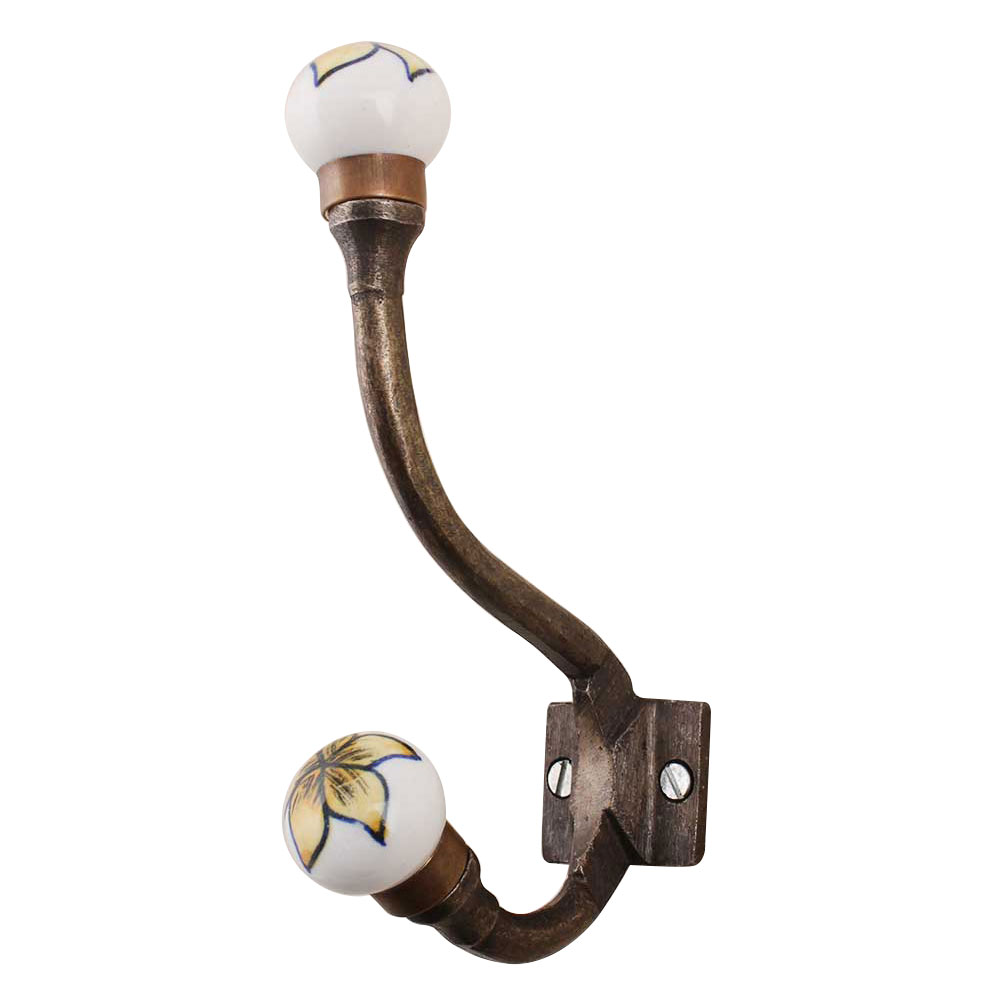 Yellow Blue Leaf Iron Hook-Ehg-71. When Put on Wall or Cabinet It Gives A Sturdy Look. This Hook is Strong Enough to Hold Your Cloths, Keys, Tea Cups, Coffee Mugs, Hand Towels Etc.