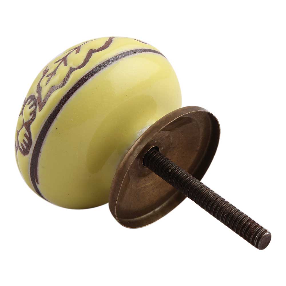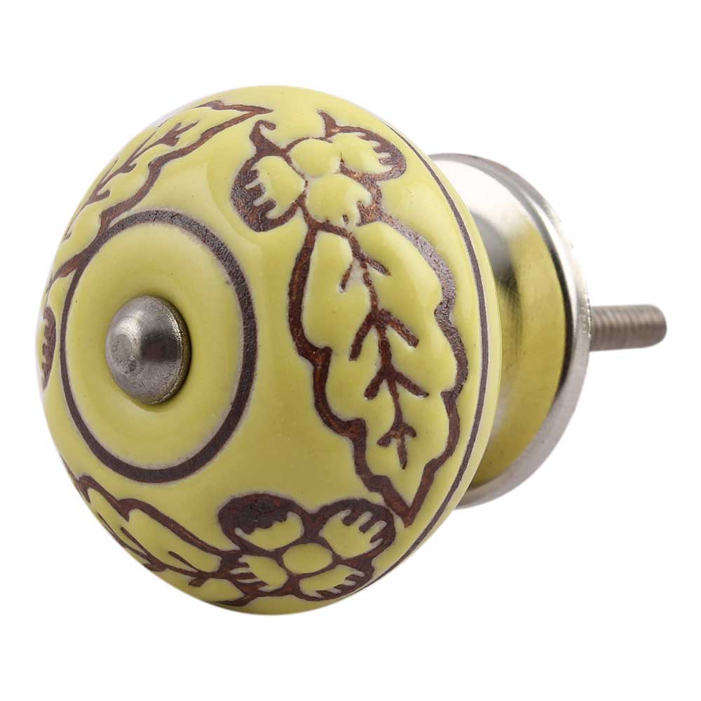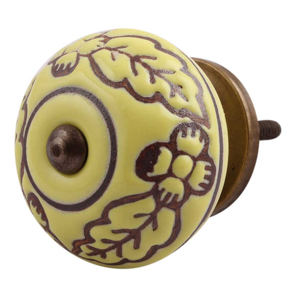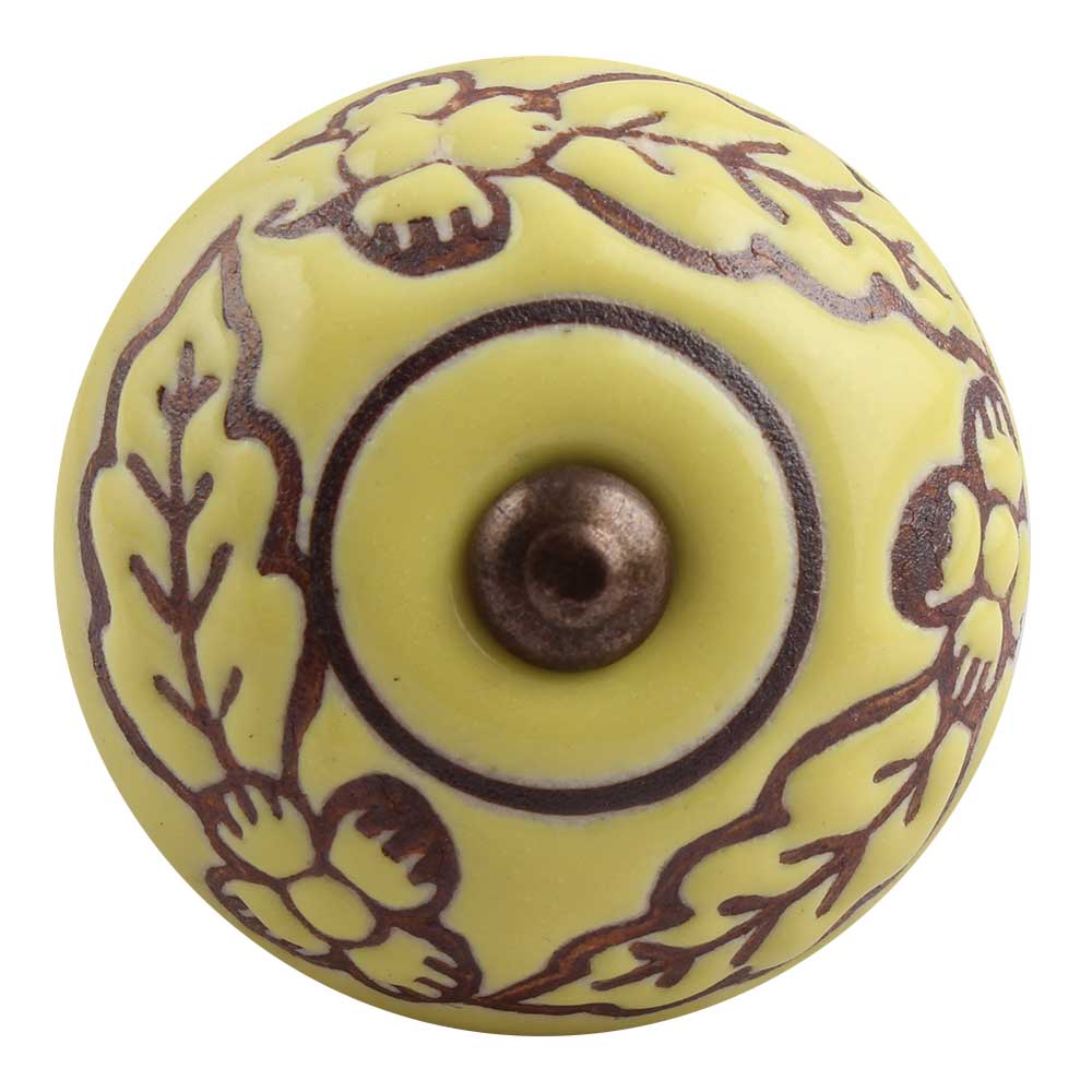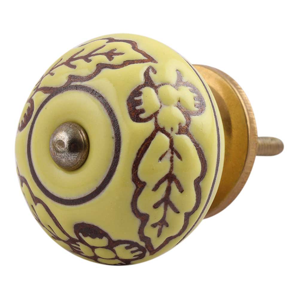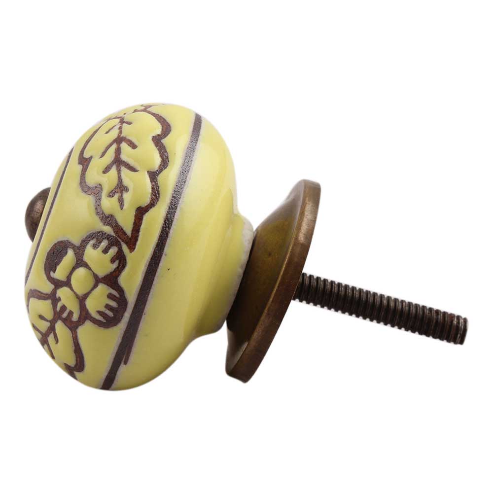Yellow Brown Leaf Flower Etched Knobs
