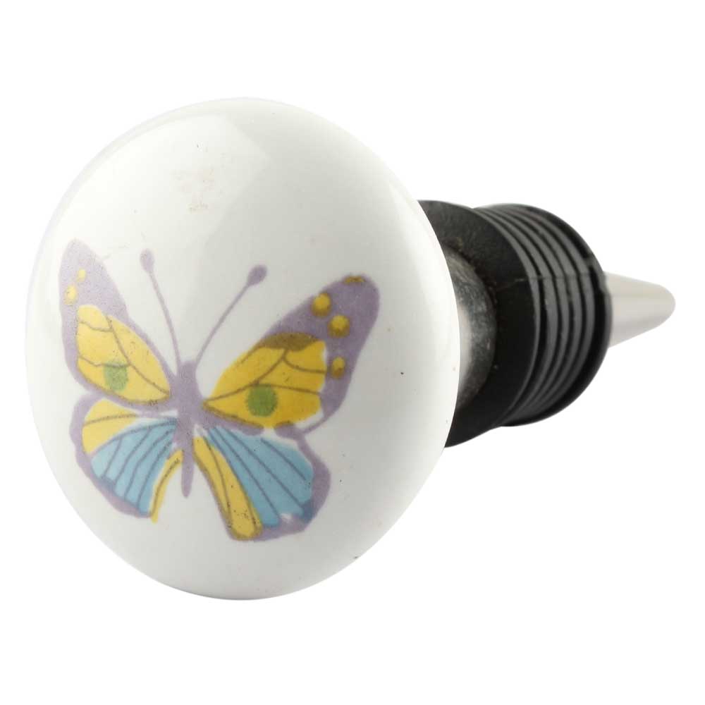 Yellow Butterfly Ceramic Wine Stopper. Zinc Alloy Wine Bottle Stopper with Attractive Jute Bag Packaging.