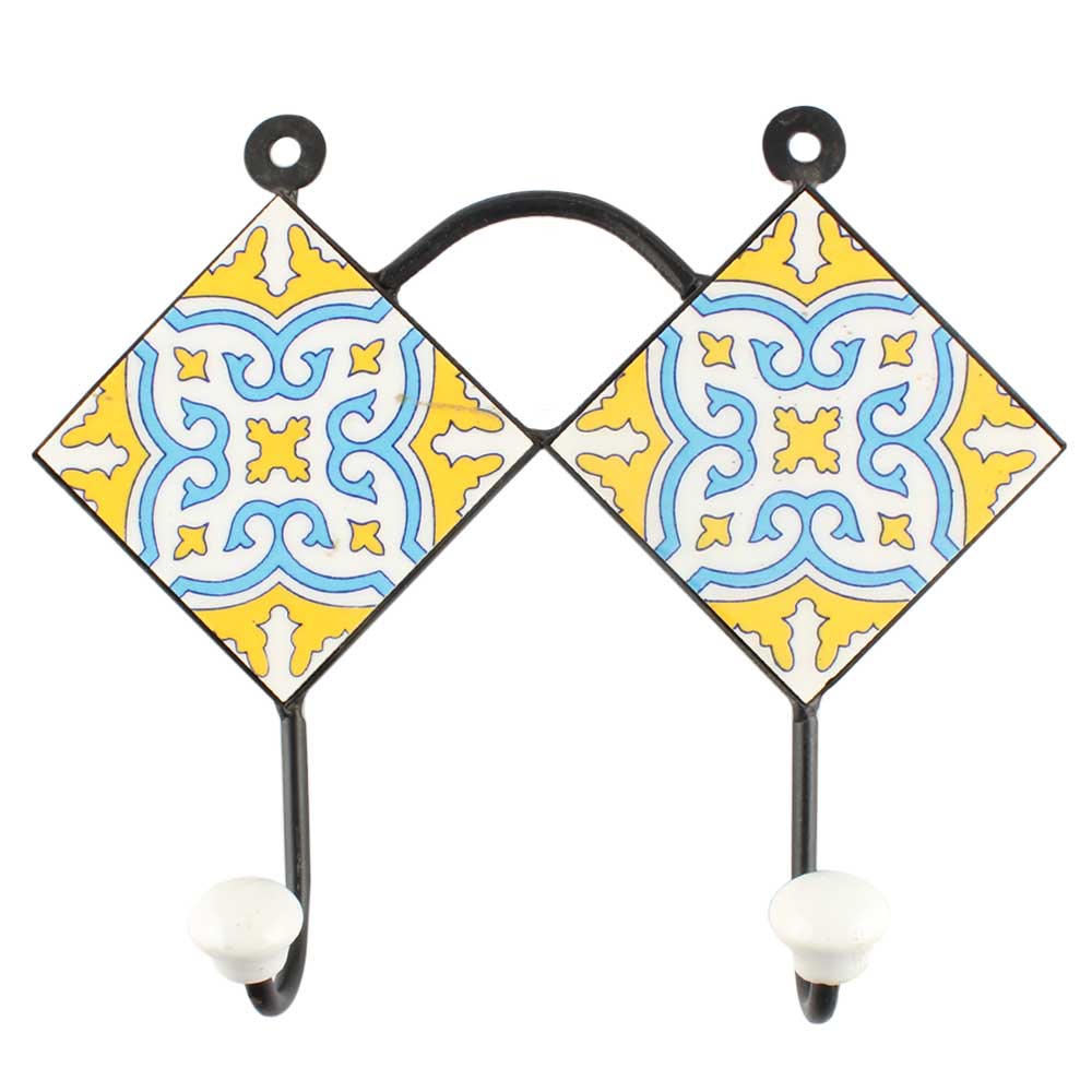 Yellow Ceramic Floral Tile Hook