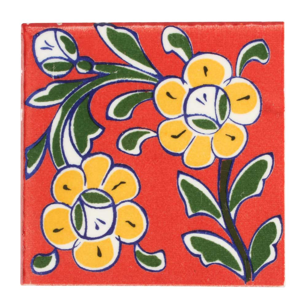 Yellow Ceramic Floral Tiles. This Tiles Can be Used as a Wall Hanging, Good for Decorate Table Desks, Install in Fireplaces, Bathrooms, Kitchens, Splash Guards etc.