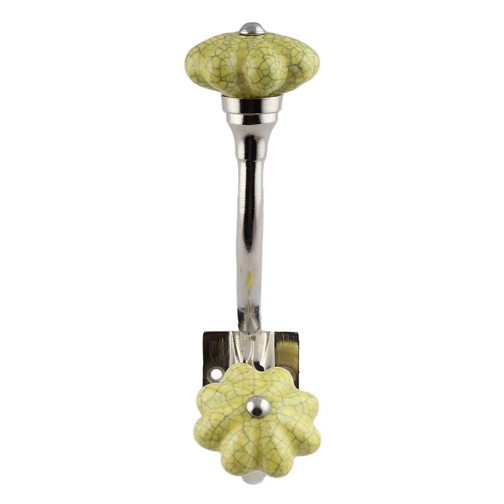 The crackle-glazed yellow ceramic creates a vintage-meets-modern look that makes this hook a standout accent piece.