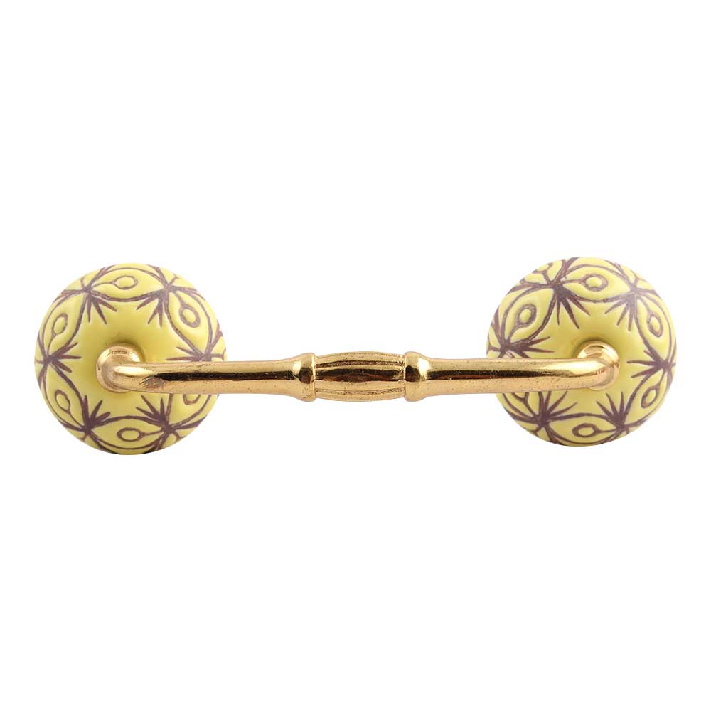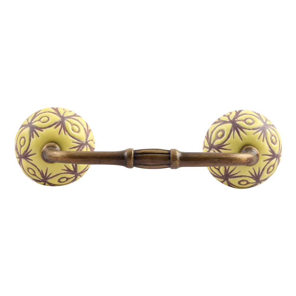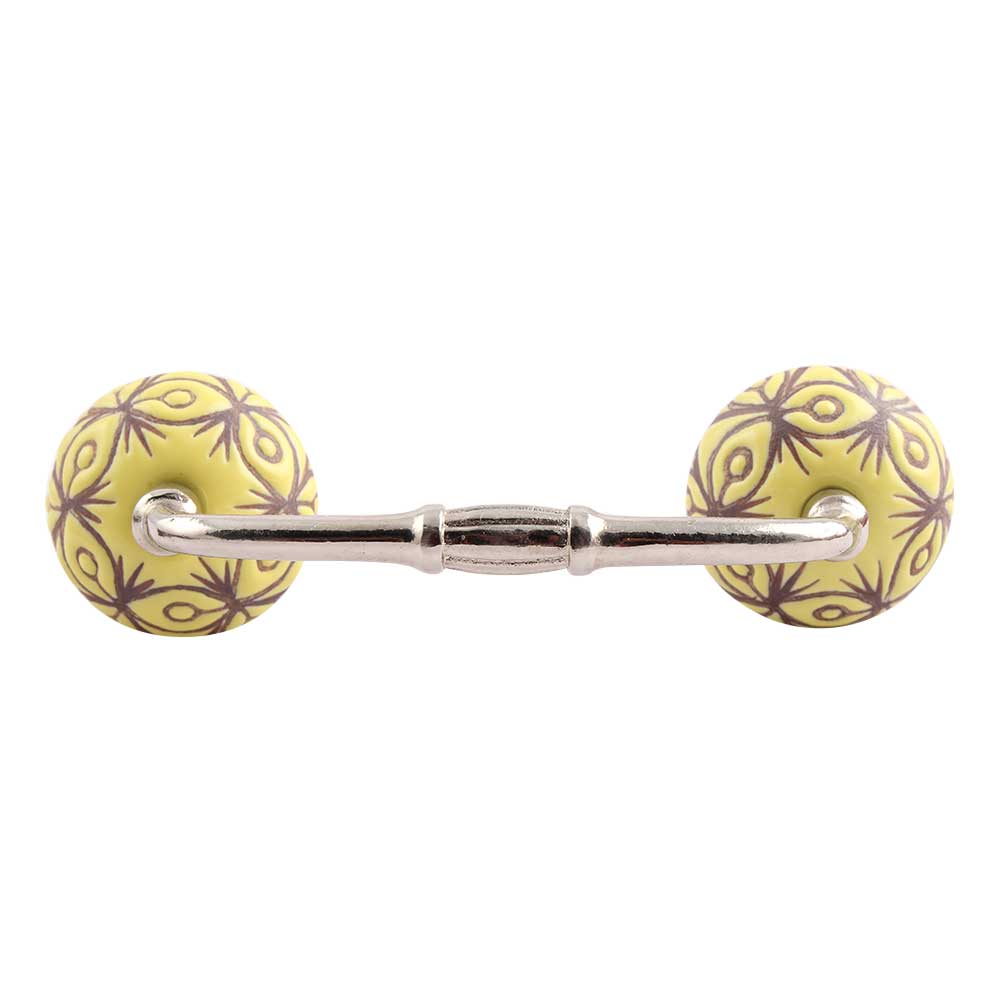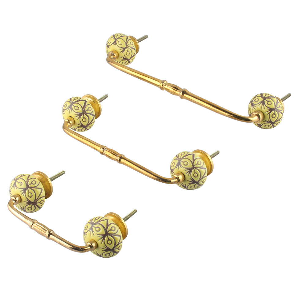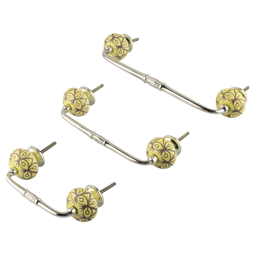 Yellow Etched Ceramic Bridge Handle. Ideal for Drawer, Dresser, Cabinet, Wardrobe, Cupboard and Almirah.