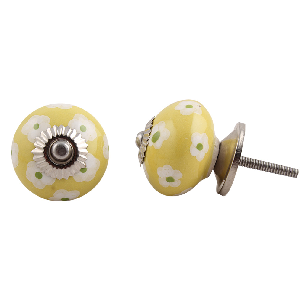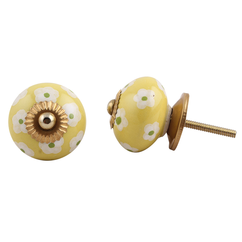 Yellow Floral Ceramic Knob, kitchen drawers, dining room, bed room, chest drawers, dressing tables, almirah