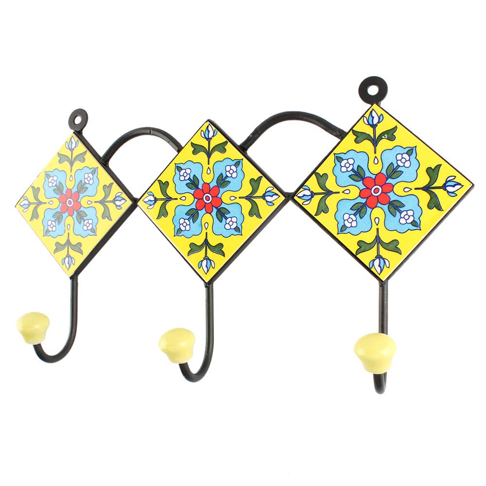 Yellow Floral Ceramic Tile Hook