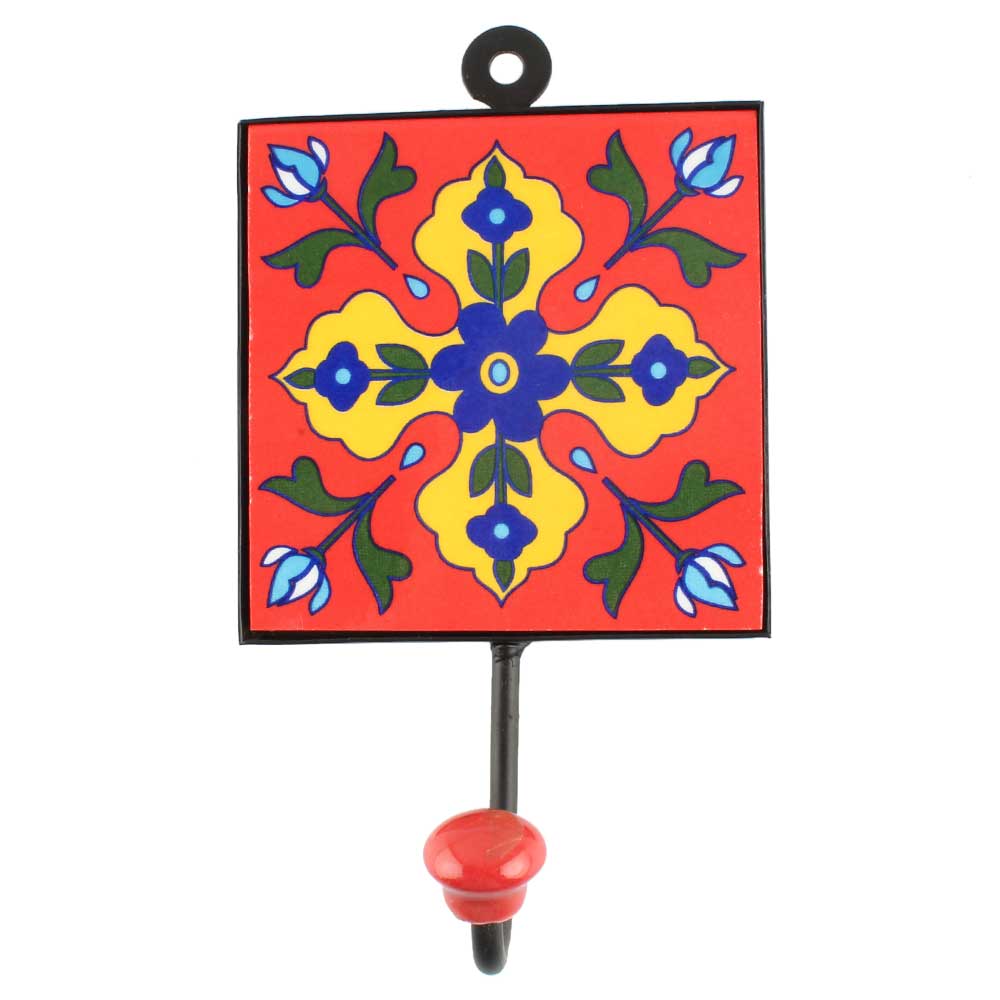 Yellow Floral Ceramic Tile Wall Hook