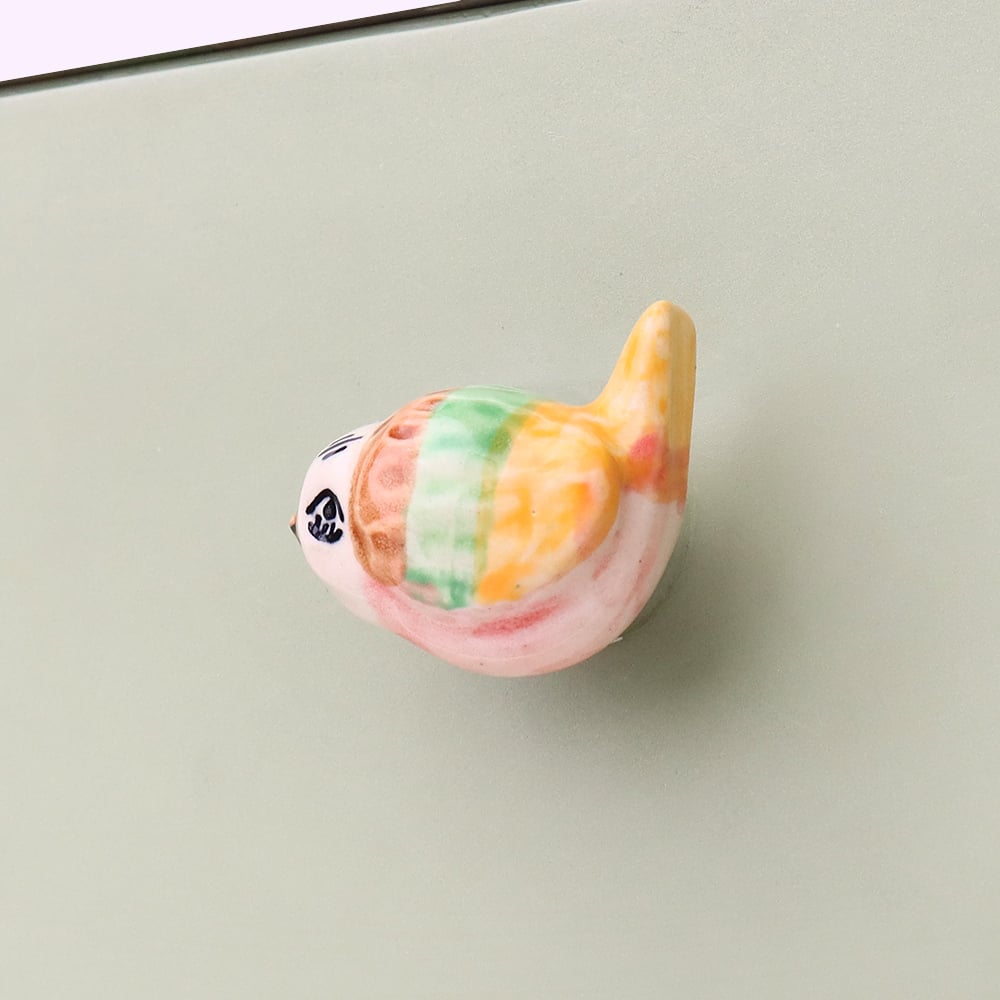 Yellow Green Ceramic Bird Modern Kids Cabinet Knob