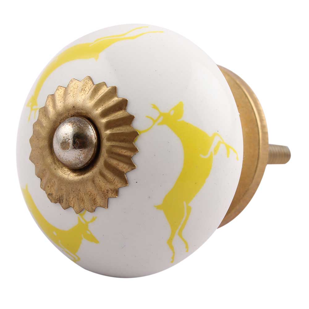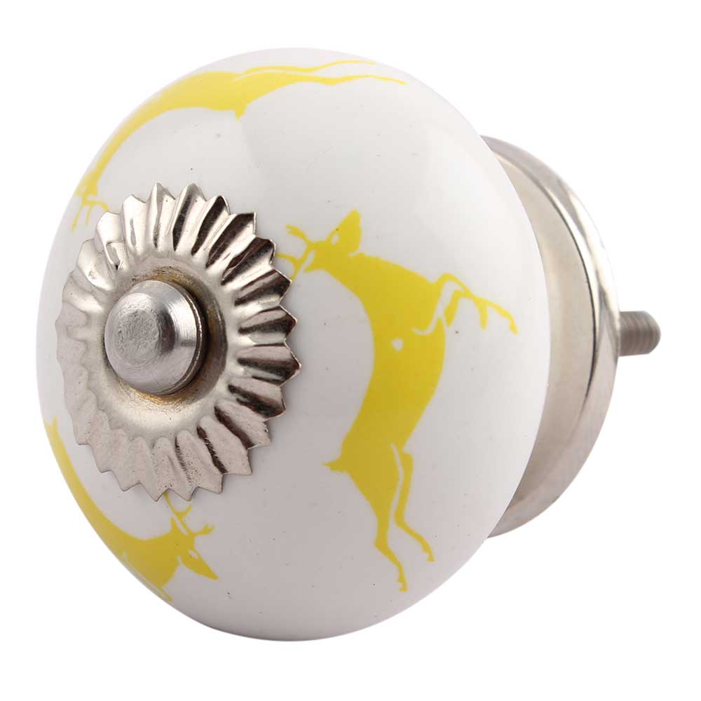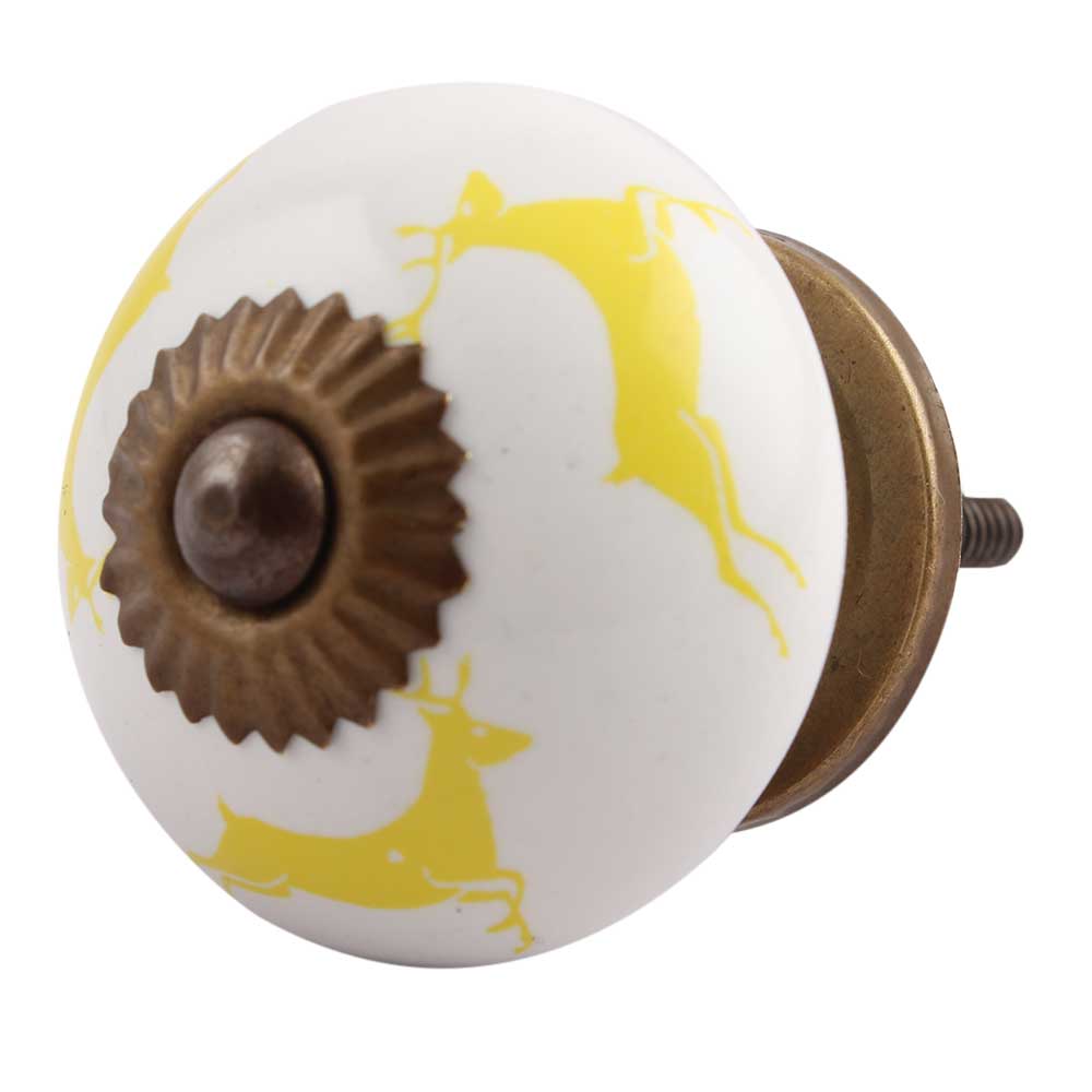 Yellow Running Rein Deer Pattern Ceramic Cabinet Knob