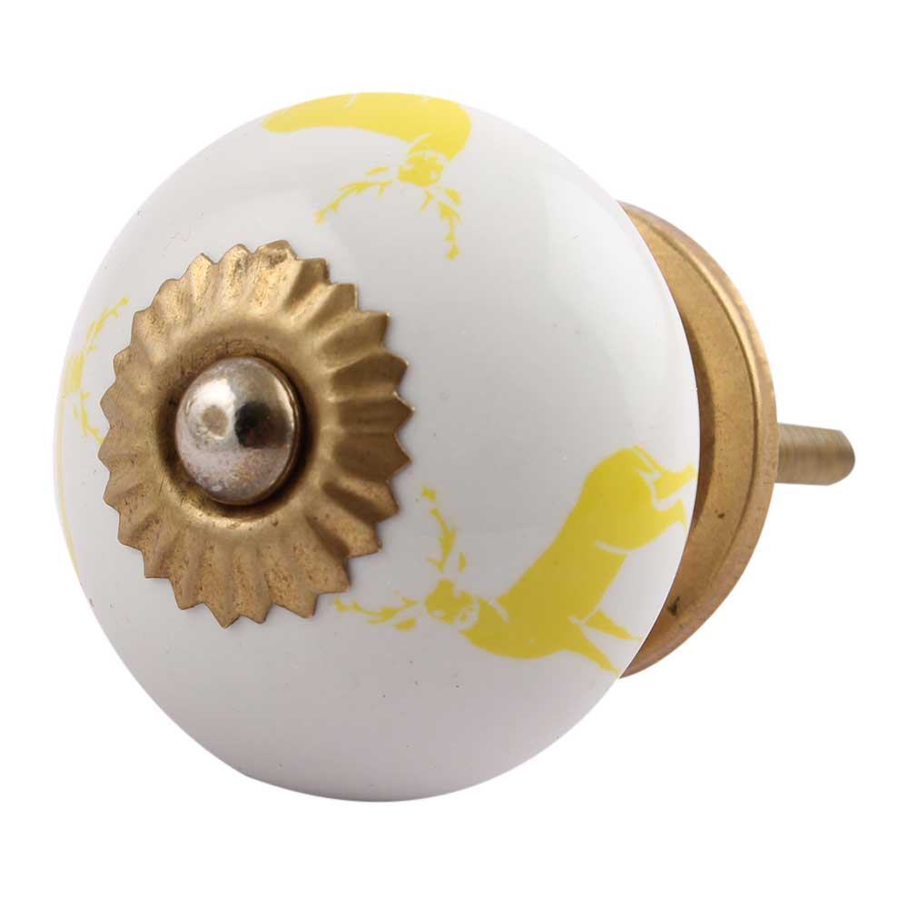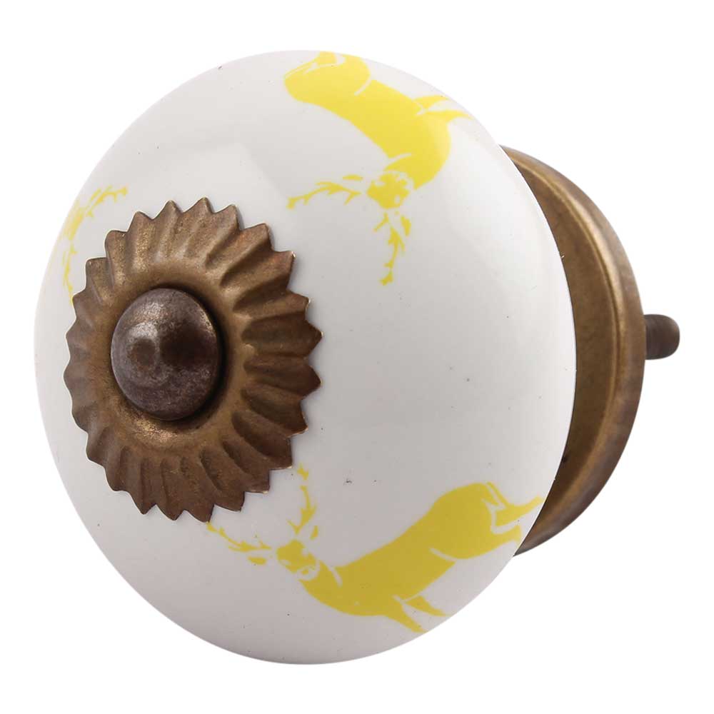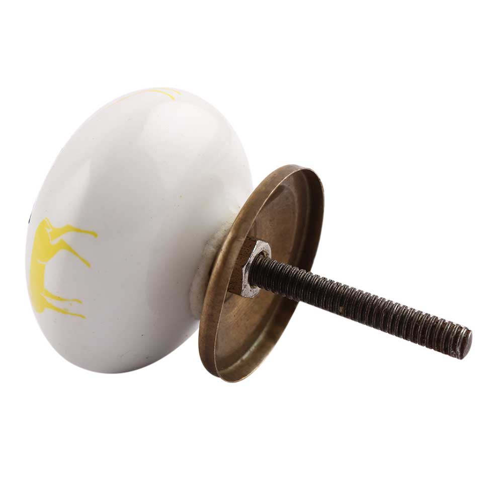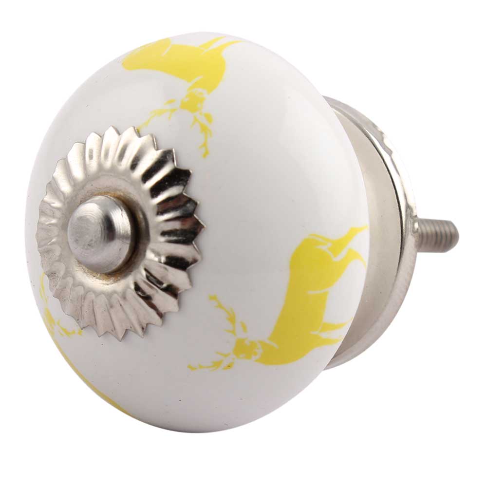 Yellow Standing Rein Deer Pattern Ceramic Cabinet Knob