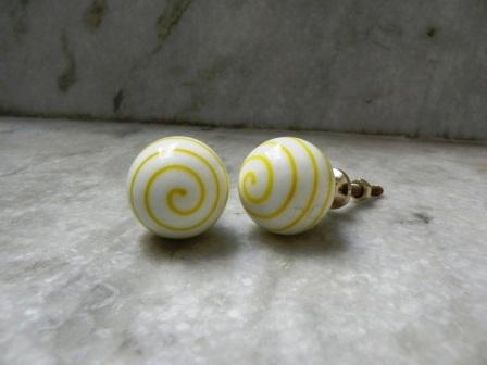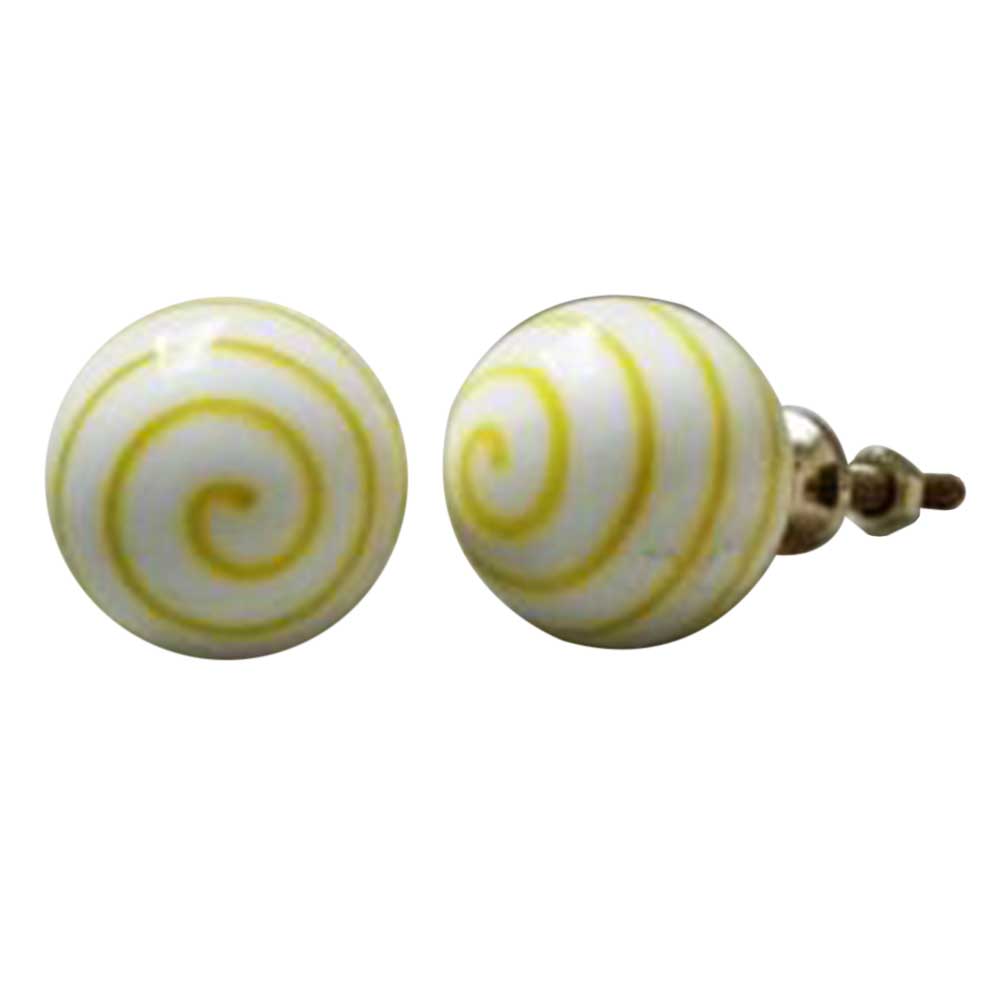 Yellow Striped White Round Glass Knobs. Ideal for Drawer, Dresser, Cabinet, Wardrobe, Cupboard and almirah