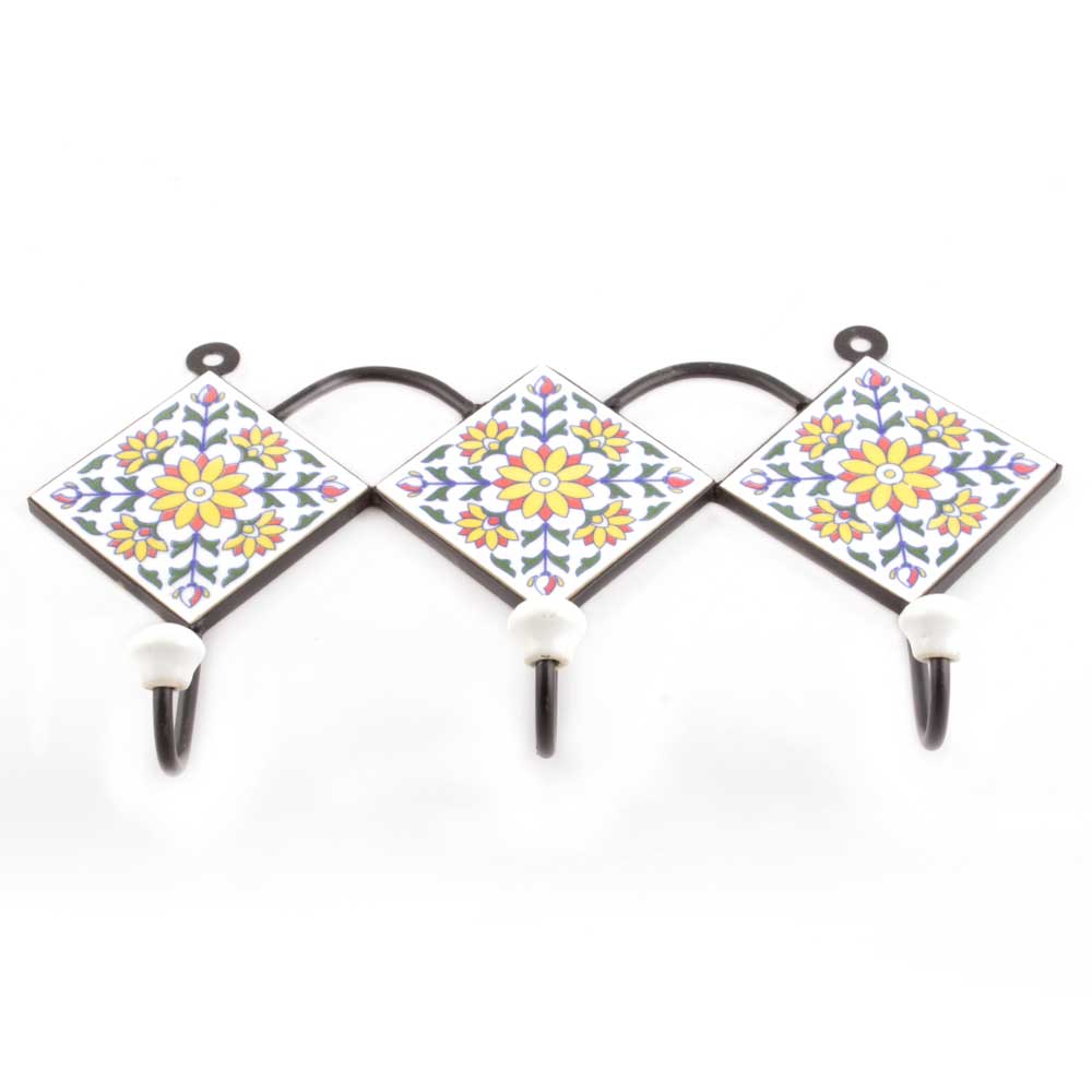 Yellow Sunflower Ceramic Tiles Hooks Online. When Put on Wall or Cabinet It is An Art in Itself. The Metal Part of this Hook is Black Powder Coated.