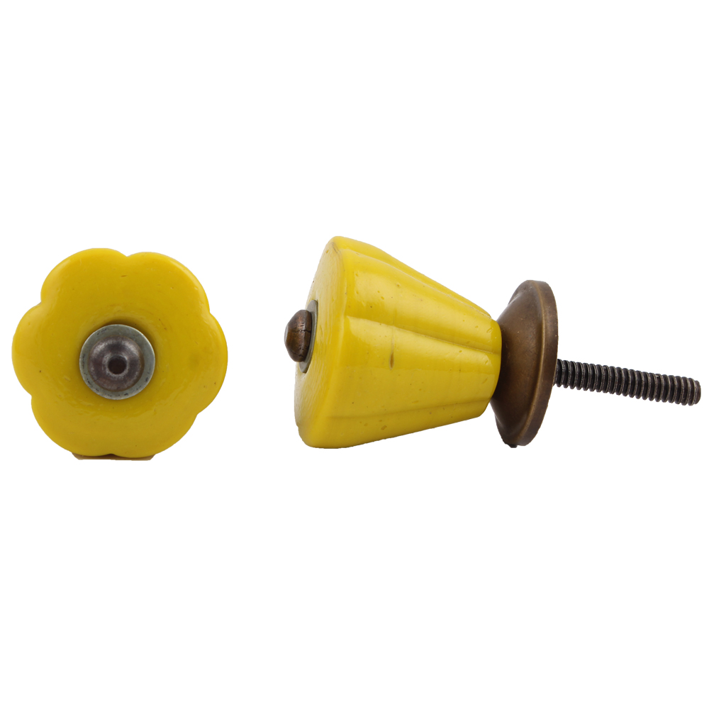 Solid Yellow Tulip Knobs. Ideal for Drawer, Dresser, Cabinet, Wardrobe, Cupboard and almirah