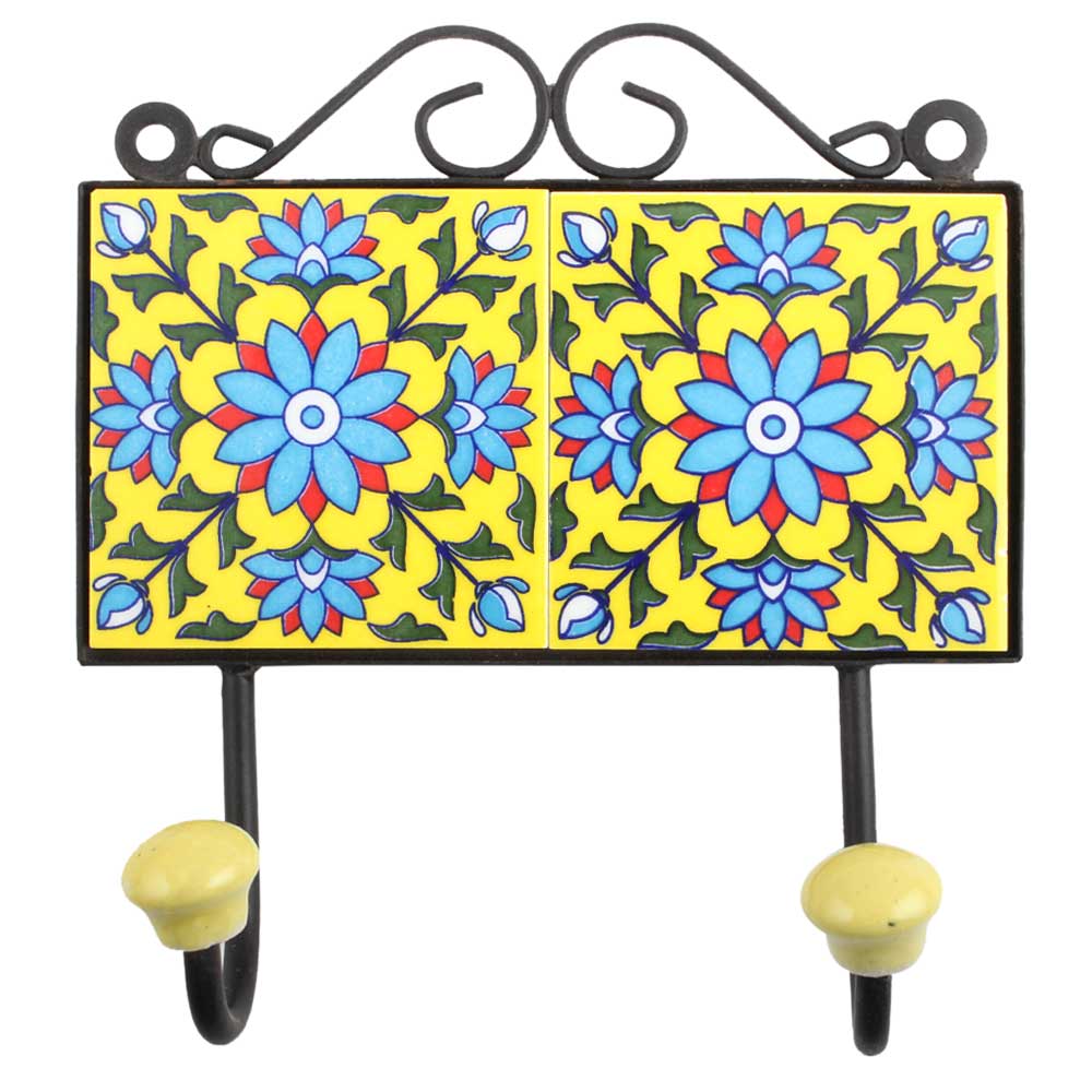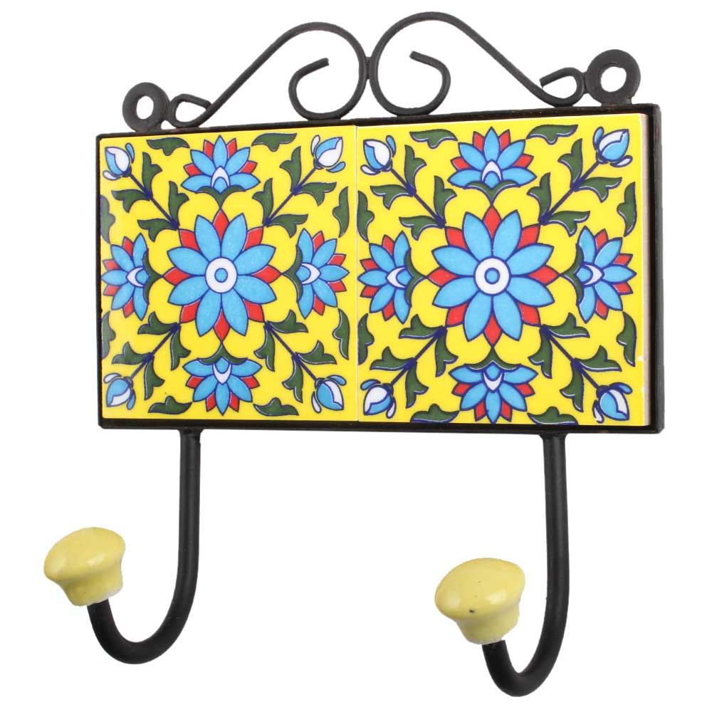Yellow Turquoise Floral Tiles Hook