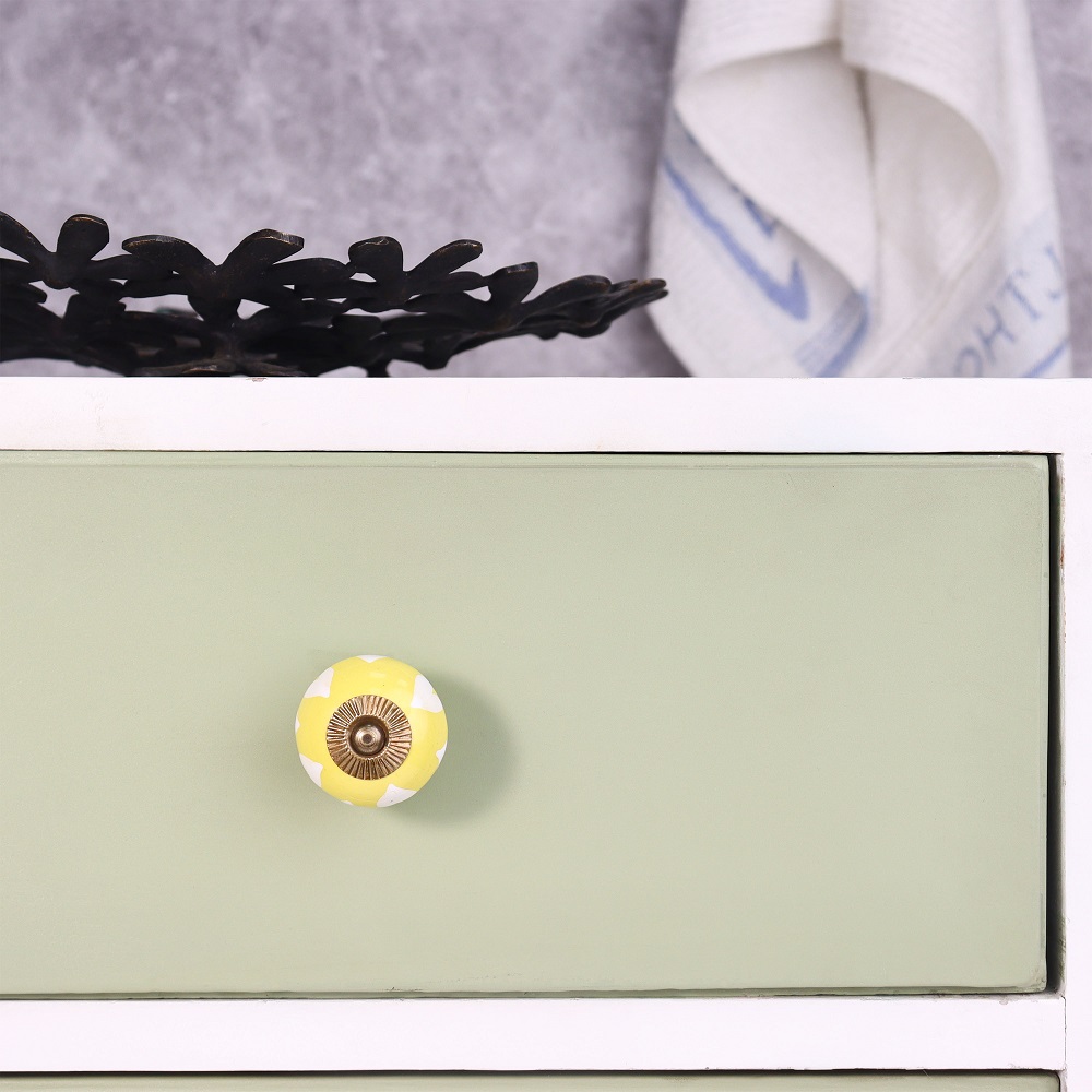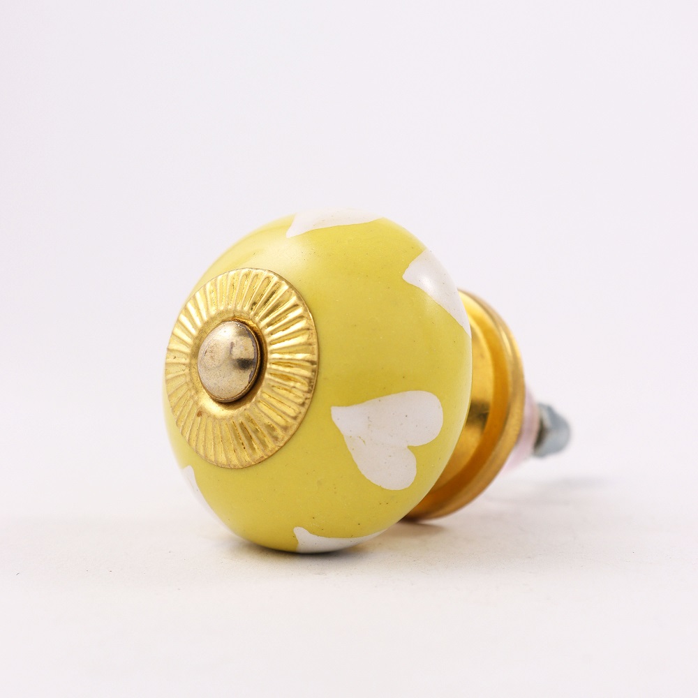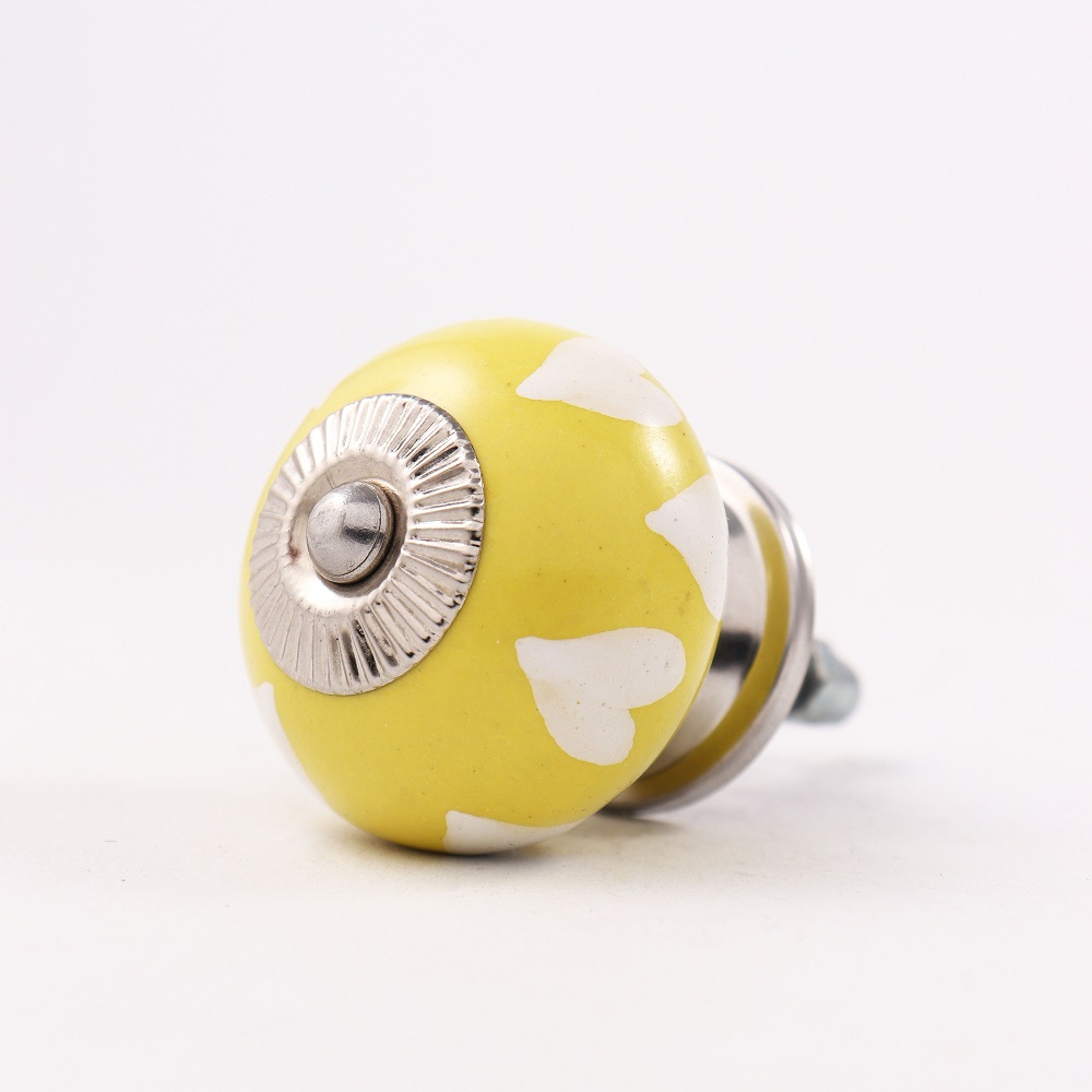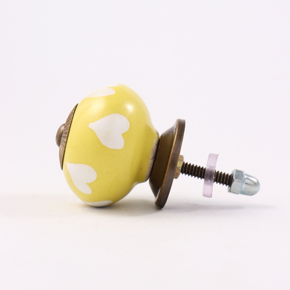 Yellow White Heart Ceramic Cabinet Knob, kitchen drawers, dining room, bed room, chest drawers, dressing tables, almirah