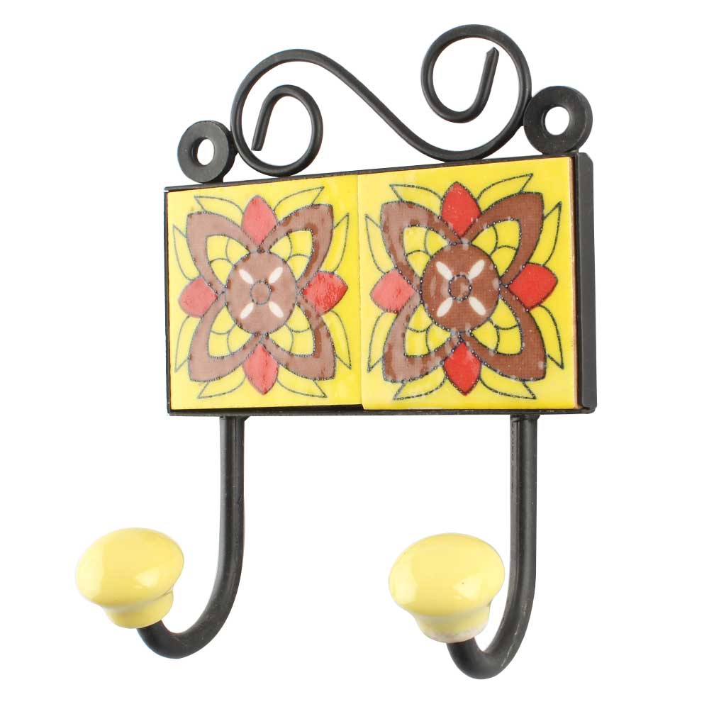 The Yellow With Brown Floral Ceramic Tiles Hook blends traditional craftsmanship with everyday practicality. Featuring a hand-painted floral pattern in earthy yellow and brown tones, this square ceramic wall hook is designed to bring warmth, charm, and utility to your home. The natural color palette offers a rustic vibe, while the durable glazed ceramic and brushed metal hook make it a lasting and reliable addition to any space.