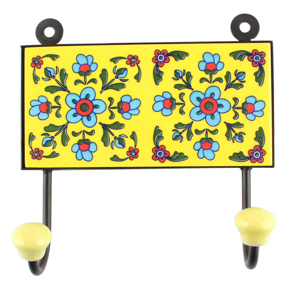 Yellow With Turquoise Tiny Flower Ceramic Tiles Hooks