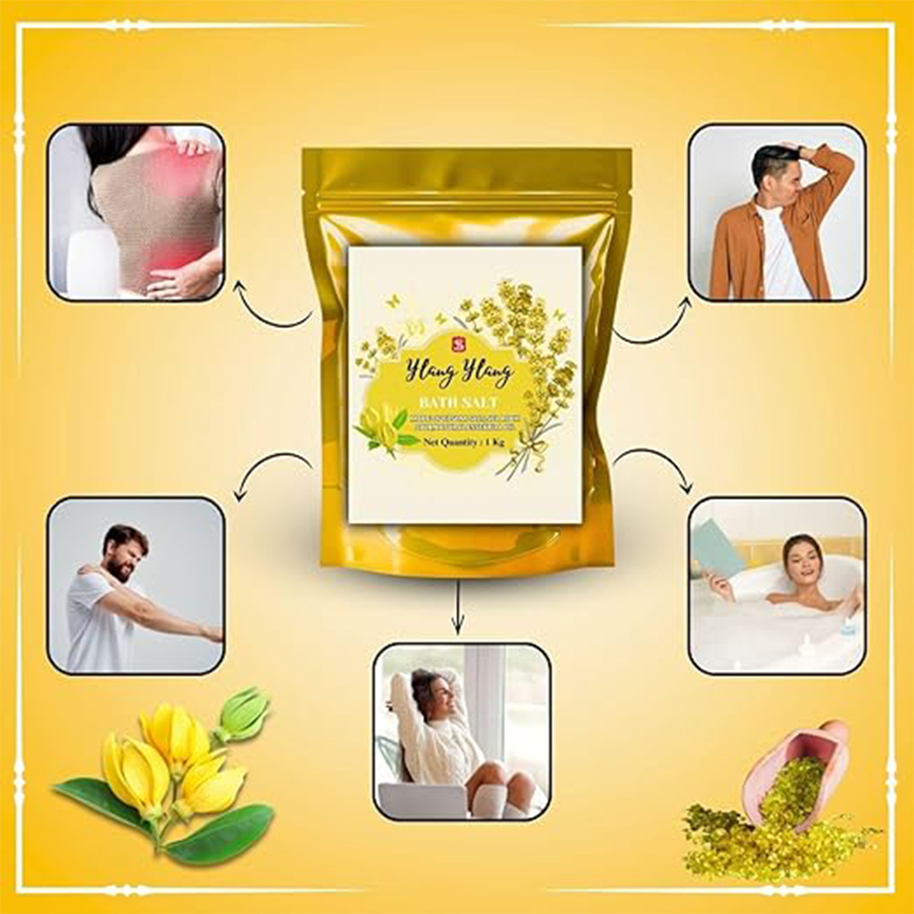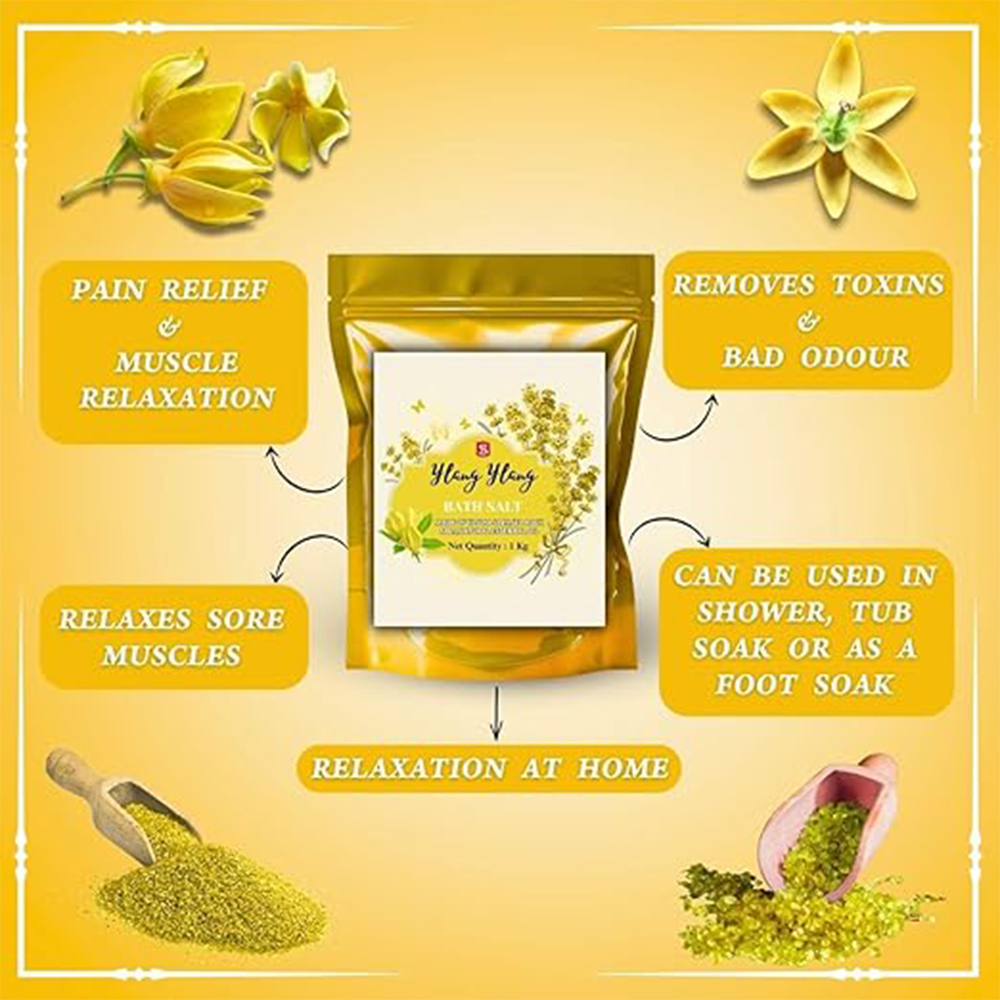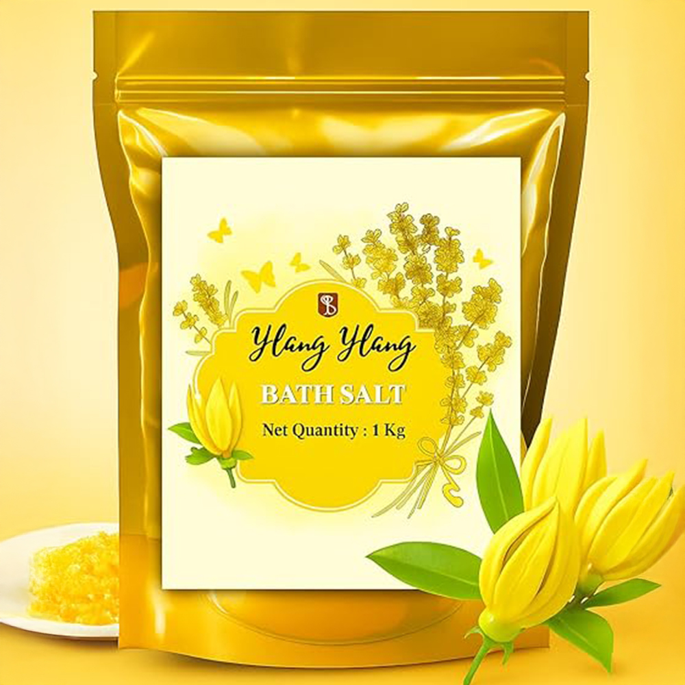 Infused with the exotic aroma of Ylang Ylang, this bath salt blend helps you unwind while nourishing your skin. Packed in a 1 kg pouch, it combines mineral-rich salts with the calming floral fragrance of Ylang Ylang to create a soothing spa-like experience at home. Packed & quality-checked by Indianshelf.