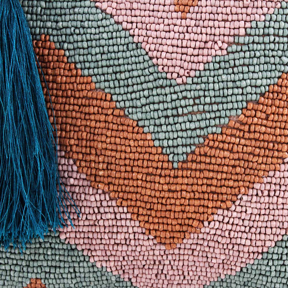 Evening bag coin purse makeup bag pouch with multicolored beads in Pink, brown, and teal beads form a beautiful zig zag pattern. Ideal for a night out, a wedding, or any other formal occasion